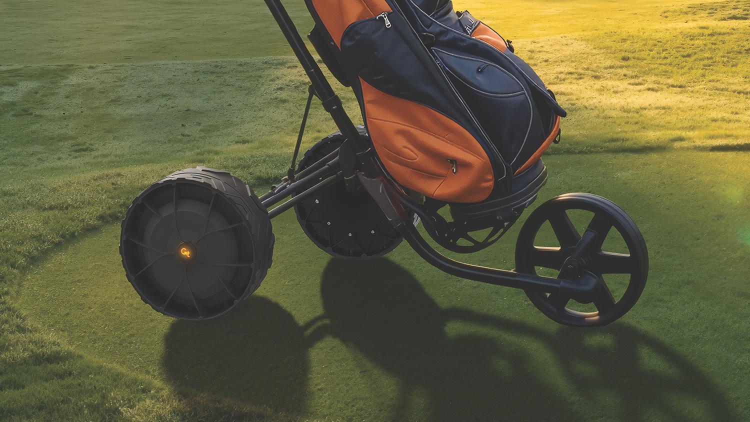 A breakthrough solution for electric golf trolleys— easier to handle, lighter to lift, and more compact to fold. Can be integrated into existing trolley designs. Completely self-contained with battery and Bluetooth remote control.